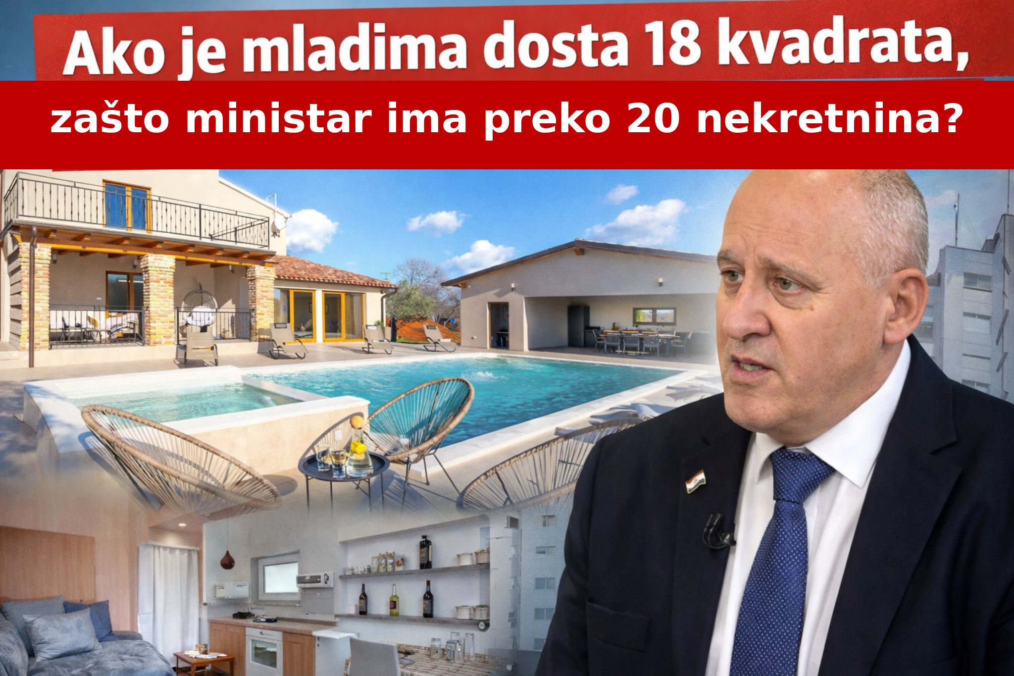 Ako je mladima dosta 18 kvadrata, zašto ministar ima preko 2...